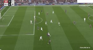 83'' 費爾明·洛佩斯送出直塞,貝爾納爾帶球突進,晃開防守球員完成破門,巴薩3比0領先。
