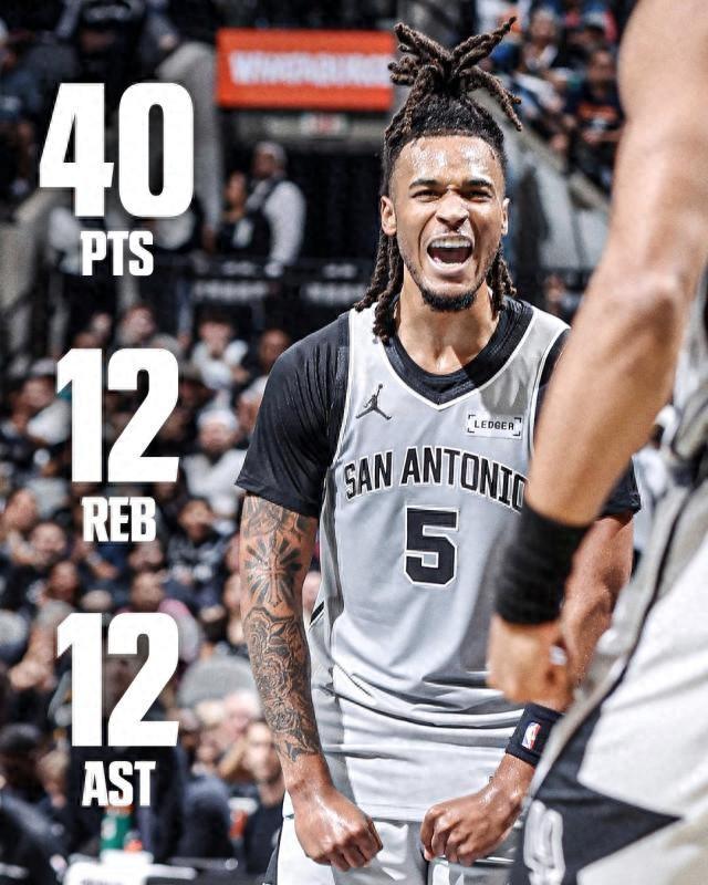 “這是他生涯至今最好的一場比賽,也是我親眼見證過的個人數據最棒的比賽之一。”馬刺球星文班亞馬稱讚自己的隊友說道。
