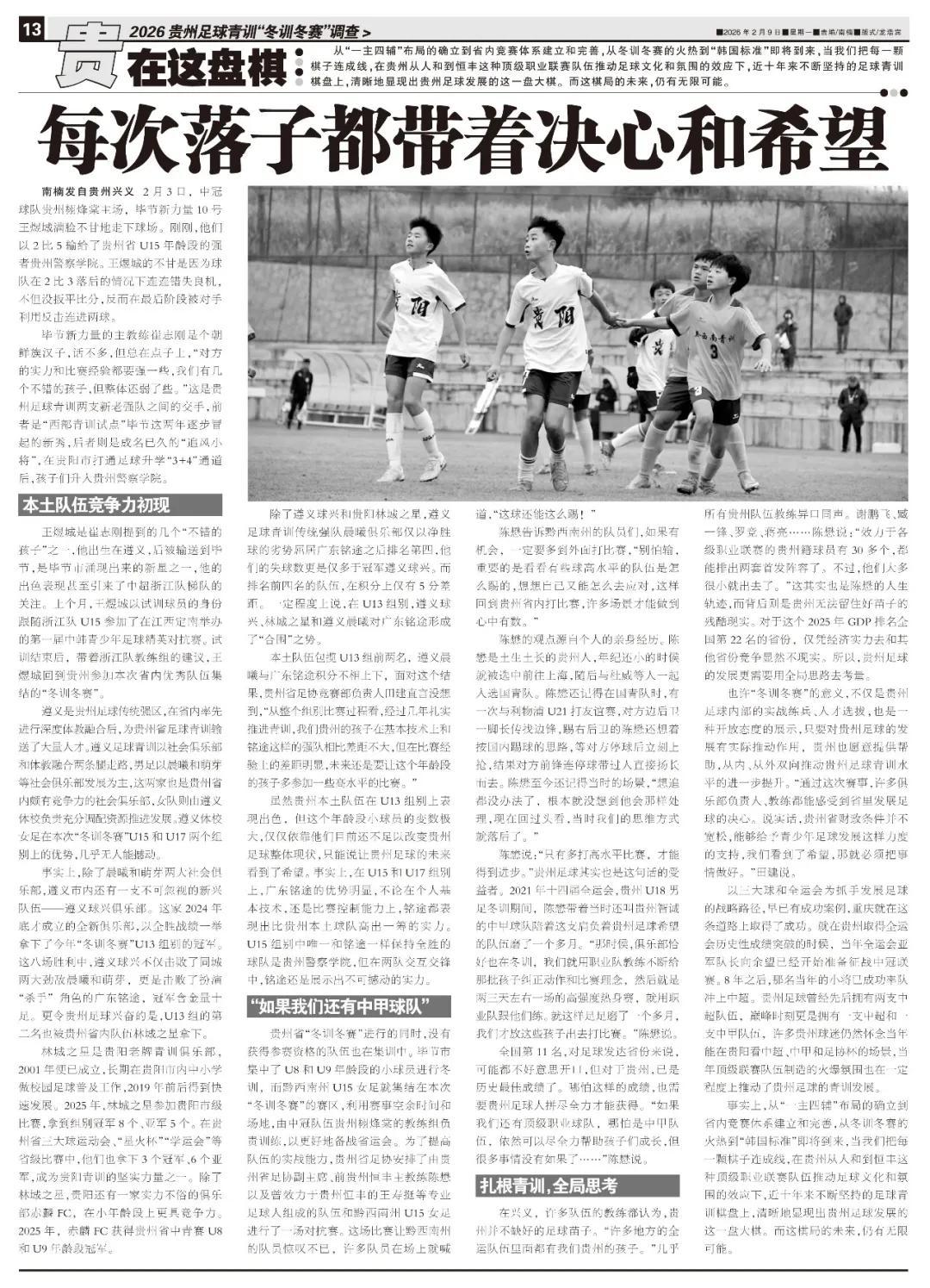 事實上,從“一主四輔”佈局的確立到省內競賽體系建立和完善,從冬訓冬賽的火熱到“韓國標準”即將到來,當我們把每一顆棋子連成線,在貴州從人和到恆豐這種頂級職業聯賽隊伍推動足球文化和氛圍的效應下,近十年來不斷堅持的足球青訓棋盤上,清晰地顯現出貴州足球發展的這一盤大棋。而這棋局的未來,仍有無限可能。
