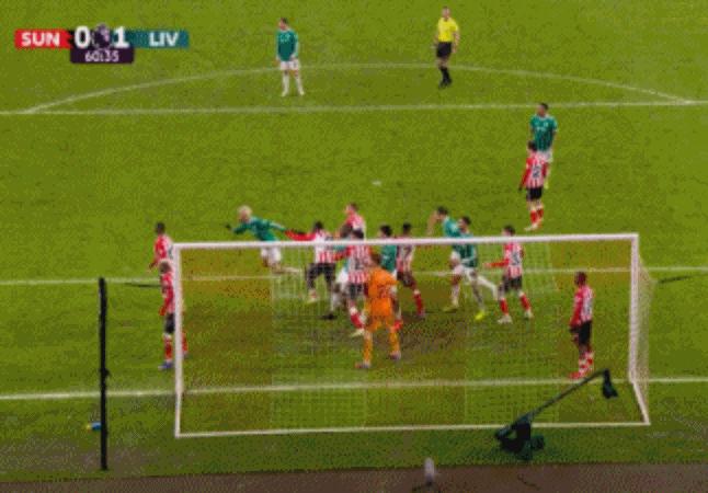 第61分鐘,薩拉赫主罰角球,範戴克躍起將球頂進。