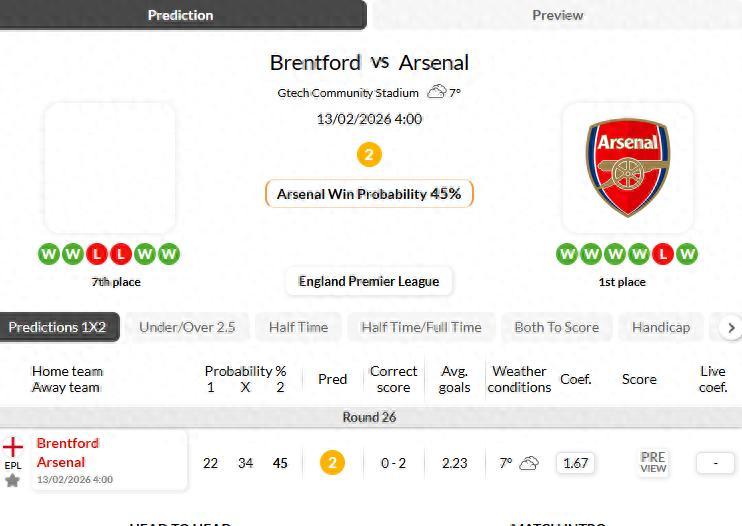布倫特福德VS阿森納