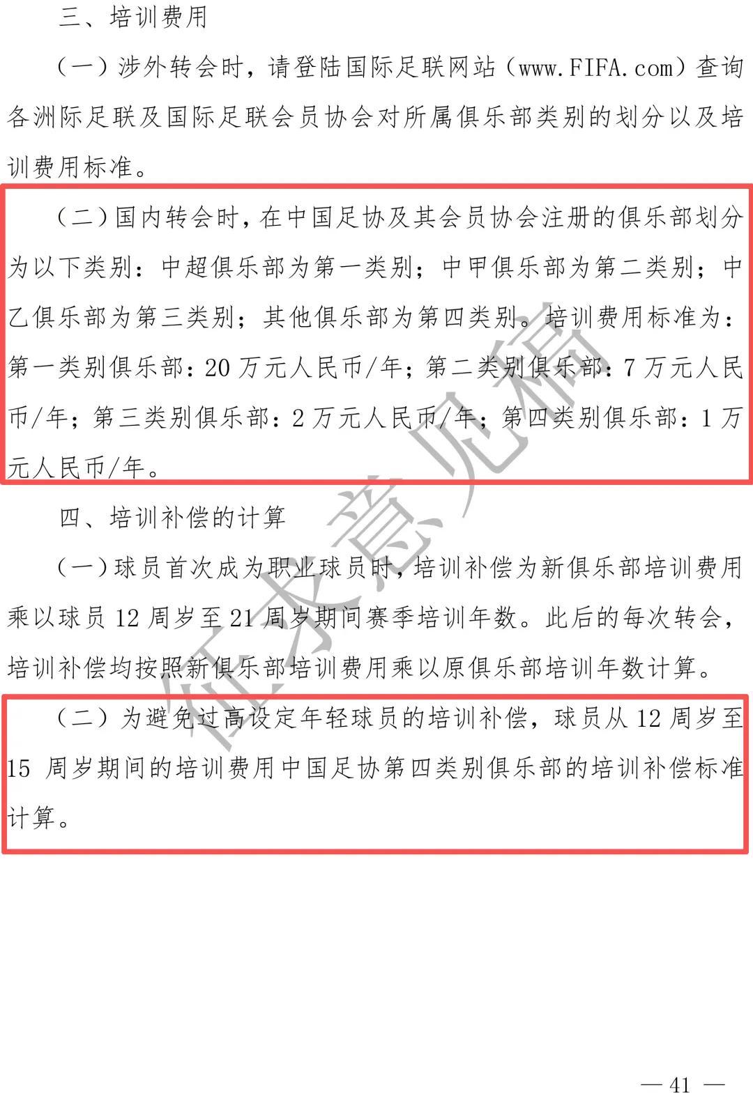 ▲全新的《球員身份及轉會管理規定(徵求意見稿)》沿用了2023年修改後的培訓補償標準