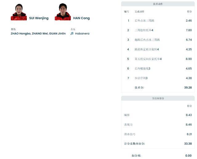 令人欣慰的是,這對老將組合穩住節奏,隨後捻轉三週、拋跳三週、託舉等動作均順利完成,接續步表現力十足,整體發揮出色。