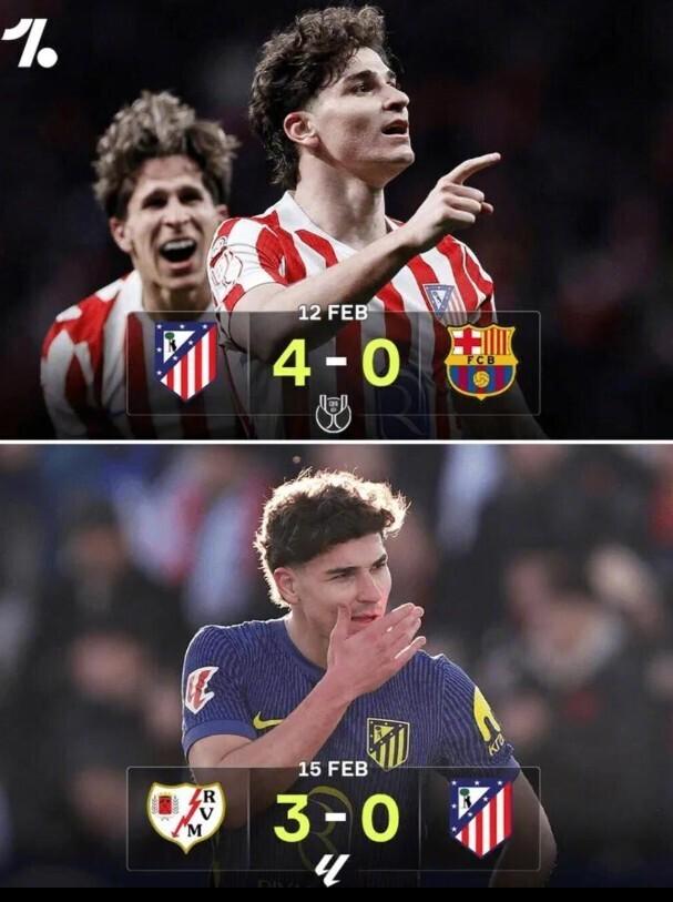 在短短几天時間內,馬競體驗了從天堂到地獄的極致落差。今日凌晨,不久前就在國王杯半決賽首回合4-0橫掃巴薩的馬競,在西甲第24輪客場0-3完敗於深陷降級區的巴列卡諾,遭遇聯賽兩連敗的同時,積分榜位置也被其他對手反超,跌至第四位。