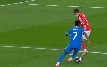 維尼修斯的高興勁沒持續太久。他在角球區附近的誇張慶祝引發了本菲卡方面的不滿。很快,巴西人走到裁判身邊申明立場,裁判做出暫停比賽的手勢。原來,維尼修斯聽到本菲卡的阿根廷中場普雷斯蒂亞尼對他說了“猴子”這個種族歧視字眼,要求啓動“反種族主義程序”。比賽中斷這10分鐘時間,包括雙方教練在內的很多人都試圖安撫維尼修斯。然而開弓沒有回頭箭,程序一旦啓動就要當場給出說法。調取錄像發現,普雷斯蒂亞尼說話時拉起球衣遮住了嘴,沒有實錘證據。看看維尼修斯,在替補席喝了點水,情緒平復些,同意繼續比賽。