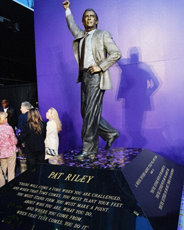 萊利在1981年至1990年執教湖人,帶隊在1982年、1985年、1987年和1988年四次奪得總冠軍。他成爲第八位擁有雕像的湖人傳奇,此前獲得雕像的是埃爾金·貝勒、科比·布萊恩特、奇克·赫恩、沙奎爾·奧尼爾、傑裏·韋斯特、“魔術師”約翰遜和賈巴爾。