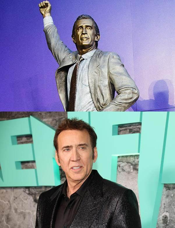 關於萊利這座雕像的形象,有網友調侃其面部形似好萊塢影星尼古拉斯·凱奇。