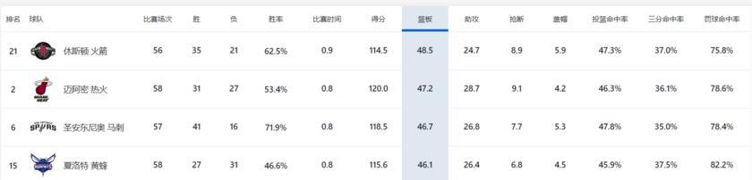 黃蜂隊整個賽季在籃板球方面的表現一直非常出色,但在過去幾個月他們的表現更是進一步提升。從1月1日起,他們在進攻籃板率(37.6%)上排名第二,在防守籃板率(73.7%)和總籃板率(55.8%)上排名第一。搶下籃板和延長控球時間是一方面,但抓住這些機會得分則是另一方面,而黃蜂隊在利用額外得分機會的同時限制對手的表現同樣出色。在同一時期,他們在次攻得分(18.9分)和對手次攻得分(12.5分)方面分別位列第二。儘管近期因爲迪亞巴特受傷而導致他們的籃板下滑,但是他們依舊場均能拿到46.1個籃板排名聯盟第四。