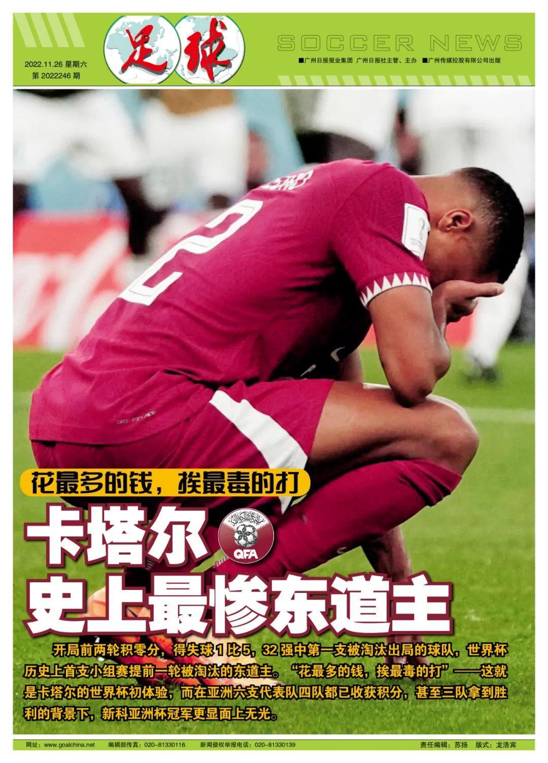 記者寒冰報道 開局前兩輪積零分,得失球1比5,32強中第一支被淘汰出局的球隊,這就是卡塔爾的世界盃初體驗!