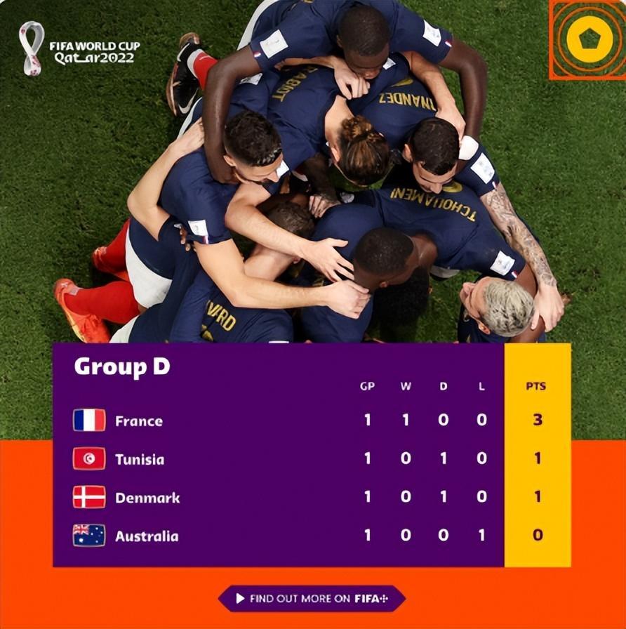 北京時間11月27日00:00,世界盃小組賽D組第2輪,法國對陣丹麥。
