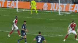 60’1比1 巴黎獲得前場右路定位球,維蒂尼亞短傳,杜埃持球突破,禁區右路下底傳中,門前馬爾基尼奧斯包抄扳平。