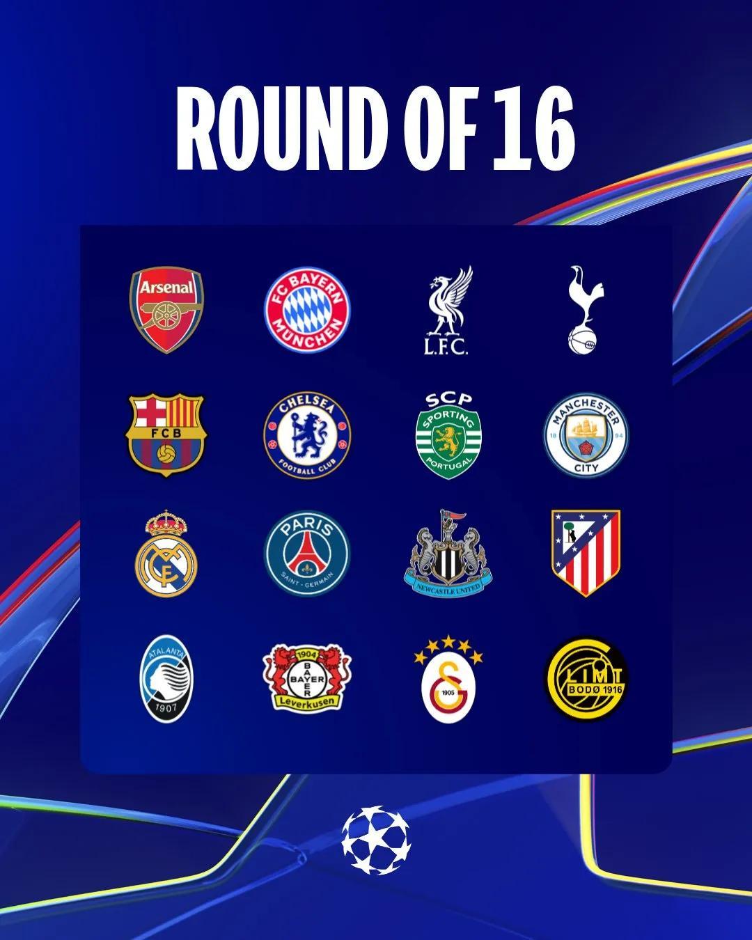 本賽季歐冠16強格局,英超斷崖式領先,歐陸四大聯賽只有西甲三強晉級。德甲兩隊(拜仁、勒沃庫森)緊隨其後,意甲與法甲各自僅有一隊入圍。英超一家聯賽的16強球隊數量,幾乎匹敵其餘四大聯賽。而且英超6隊有5隊是聯賽階段直接晉級,唯一參加淘汰賽附加賽的紐卡斯爾聯也籤運上佳,輕鬆擊敗阿塞拜疆黑馬卡拉巴赫晉級。