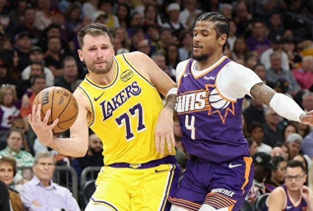 上半場,湖人多位球員狀態不佳,所幸東契奇保持出色的狀態,幫助湖人在半場結束時和太陽戰成49平。