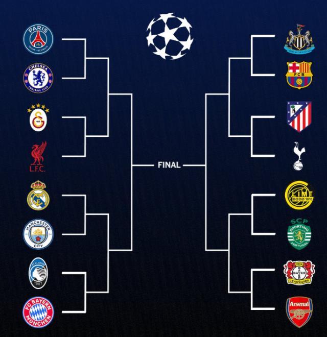 非種子隊:皇家馬德里(西甲)、巴黎聖日耳曼(法甲)、紐卡斯爾聯(英超)、馬德里競技(西甲)、亞特蘭大(意甲)、勒沃庫森(德甲)、加拉塔薩雷(土超)、博德閃耀(挪威)