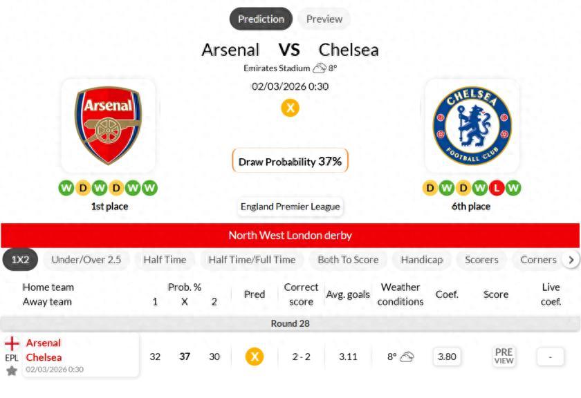 切爾西在本場比賽之前已經連續兩場比賽收穫平局