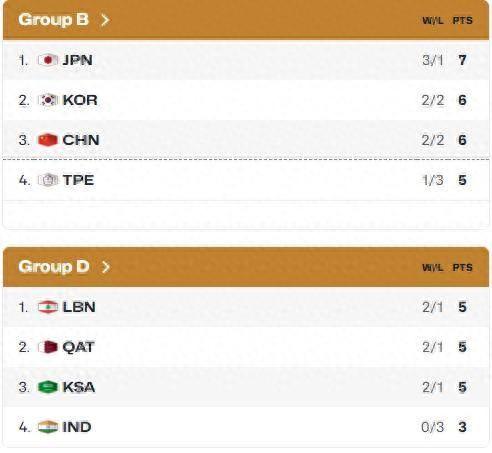目前B組前三名爲日本、韓國、中國,第四名是中國臺北,D組前三名爲黎巴嫩、卡塔爾、沙特阿拉伯,第四名是印度。考慮到中國臺北和印度很可能無法向上爬升,中國男籃將從第四窗口開始面對黎巴嫩、卡塔爾、沙特三個對手,屆時中東地區的局勢也將影響中國男籃的賽程安排。