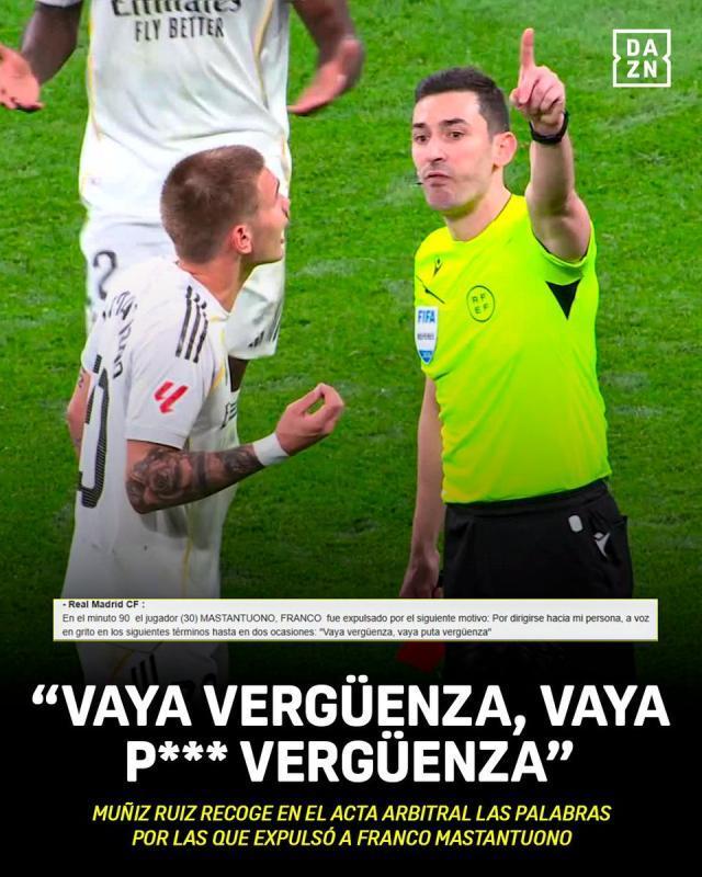 根據裁判的賽後報告,他對兩三米外的主裁判穆尼斯·魯伊斯罵了“真是恥辱,真XX的恥辱!”據西班牙足協紀律守則第124條規定:“以蔑視或不尊重的態度或言語對待裁判,只要該行爲不構成更嚴重的違規行爲,將被處以停賽2至3場或長達1個月的處罰。” 馬斯坦託諾的情節很可能只會停賽2場,錯過3月6日作客塞爾塔和3月14日主場對埃爾切的比賽。