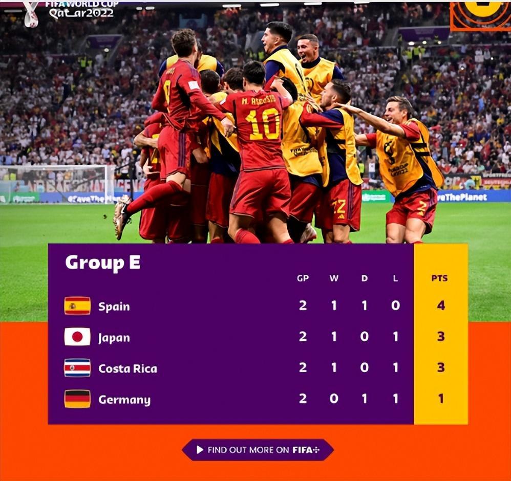 莫拉塔替補登場打進首開紀錄的進球,菲爾克魯格83分鐘扳平,最終德國1-1戰平西班牙。雖然仍然排名小組墊底,但最後一輪德國隊能擊敗哥斯達黎加的話,還是很有希望出線的。