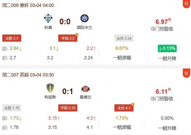 北京時間3月4日,【球勝比分APP】冷門預警爲大家羅列各項足球讓球勝平負和足球勝平負的賽事誤差較大場次,各位球友敬請留意。