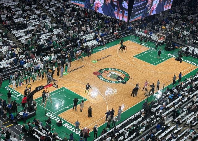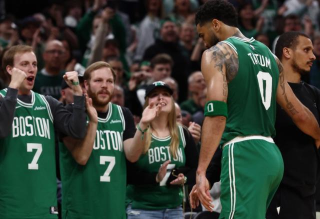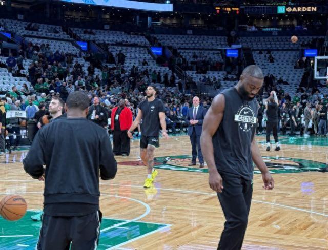 時隔近十個月從跟腱傷勢中迎來複出的塔圖姆,在開場前一個半小時便早早出場熱身。當雙探花再次同框熱身時,凱爾特人彷彿又回到了那支“東部之王”的無解姿態。爲了迎接當家球星的歸來,TD花園球館全場鋪滿了三葉草T恤,距離開賽還有一個小時,球館內就已經人聲鼎沸。