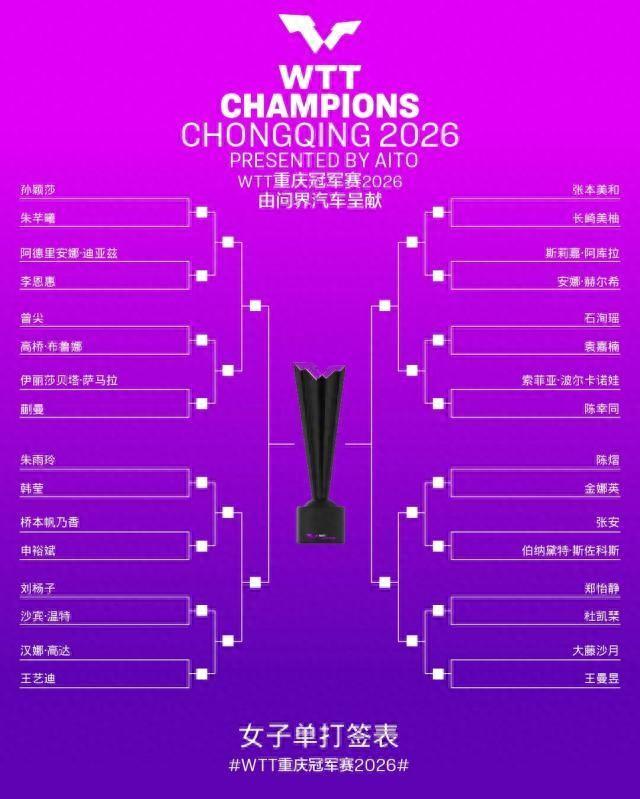 2026年WTT重慶冠軍賽3月8日正式揭曉了女單籤表,國乒派出孫穎莎和王曼昱領銜的7人豪華陣容主場作戰,分別位於上下半區的孫穎莎和王曼昱,能夠像今年海口亞洲盃和新加坡大滿貫一樣,再度成功會師決賽嗎?
