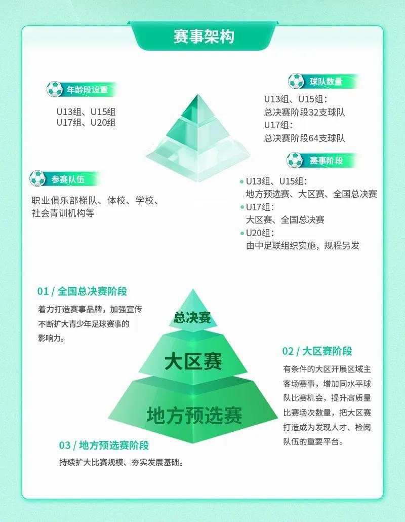 (二)全面提升中青賽的規模和質量,重點方向其一是擴大地方預選賽的規模和賽事質量,其二則是在總決賽階段增加高質量賽事包括增加主客場賽事。