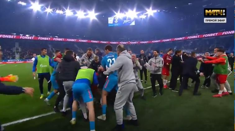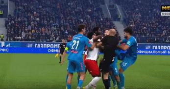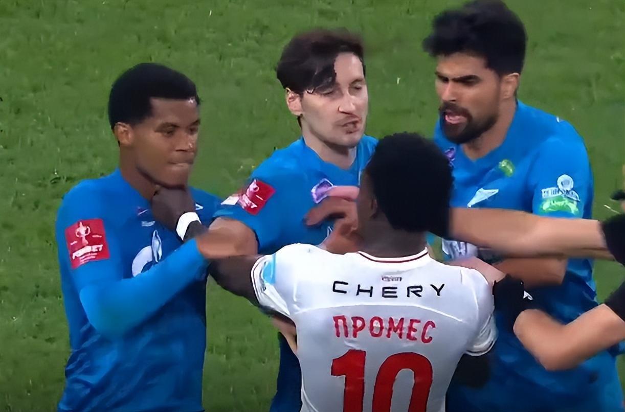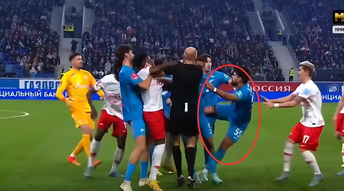 起因是澤尼特中場巴里奧斯跟荷蘭國腳普羅梅斯發生身體衝突,後者直接動手掐對方脖子。而澤尼特後衛羅德里岡起腳飛踹對方,直接把雙方的情緒徹底點燃。