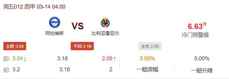比利亞雷亞爾目前高居西甲第4位,與第三名馬德里競技同分,爲穩固歐冠資格搶分意願同樣強烈。球隊進攻端火力兇猛,27場打入50球,是聯賽進球第三多的隊伍,近7輪聯賽連續進球,場均打進1.86球,進攻穩定性值得肯定。然而比利亞雷亞爾的客場表現極爲糟糕,近6個正式比賽客場僅取得1勝1平4負,勝率低至16.7%,且近10個客場場均失球達到1.8個,防守漏洞明顯。球隊同樣受到傷病困擾,主力後衛胡安·弗伊斯因跟腱傷勢缺陣,主力前鋒阿約塞·佩雷斯出戰成疑。需要注意的是,比利亞雷亞爾近5年客場對陣阿拉維斯的輸球率高達75%,且本賽季客場在落後的情況下最終輸球率達100%,逆風球能力爲零。