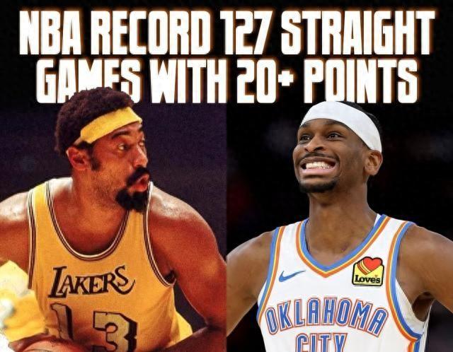 連續127場得分20+只統計常規賽的數據。上賽季的季後賽,亞歷山大有過3場得分不到20分。此外,亞歷山大在連續127場砍下20+的比賽中,有過兩次得分正好是20分,且都出現在本賽季雷霆大比分獲勝的比賽裏。