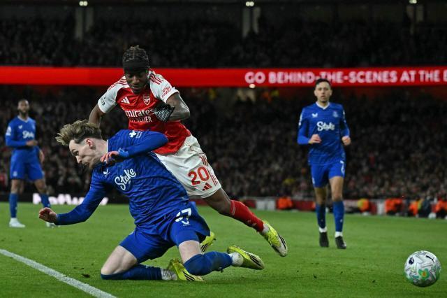 開場前20分鐘,客場出戰的埃弗頓就曾兩次讓主場球迷心驚肉跳,一次是拉亞攔截高空球沒撲遠,麥克尼爾的跟進補射讓卡拉菲奧裏演了一出“蠍子擺尾”堵槍眼。隨後麥克尼爾又一腳禁區外兜射砸在了立柱上,看得場邊的埃弗頓主帥莫耶斯也是抱頭嘆息。誠然,埃弗頓若先進球,阿森納倒也未必不能贏——哈弗茨在上半場就有過一次絕佳機會,只是禁區內被絆倒卻沒有獲得點球。慢鏡顯示,對方後衛與其上半身的拉扯確實不嚴重,但邁克爾·基恩的腳肯定踩到了哈弗茨的後跟,卻不知爲何當值主裁和VAR都沒有判處極刑。