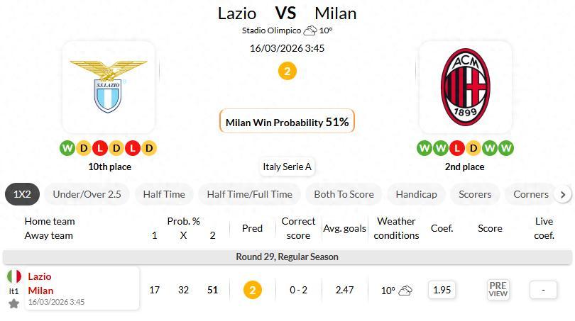 Lazio are unbeaten in 5 of their last 6 matches against AC Milan