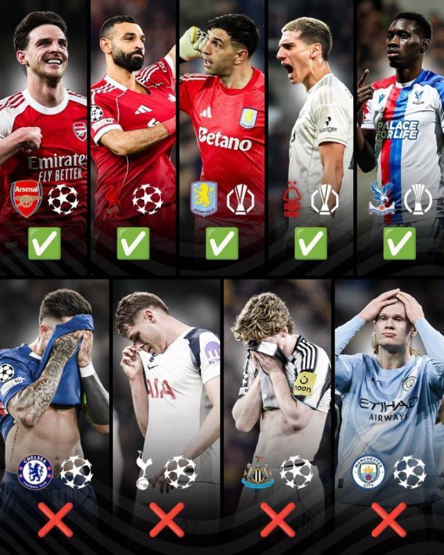 英超9隊參加歐戰最終5隊晉級:歐冠4隊出局