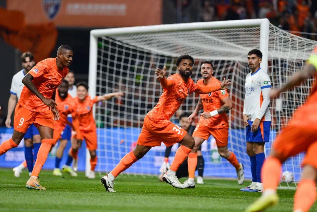 一開始是閃擊。開賽不到2分鐘,左腳將約尼查開出角球,卡約頭球攻進自己的中超首粒進球。進球后巴西人興奮不已,先是跪地祈禱,之後又面向觀衆雙手比心。