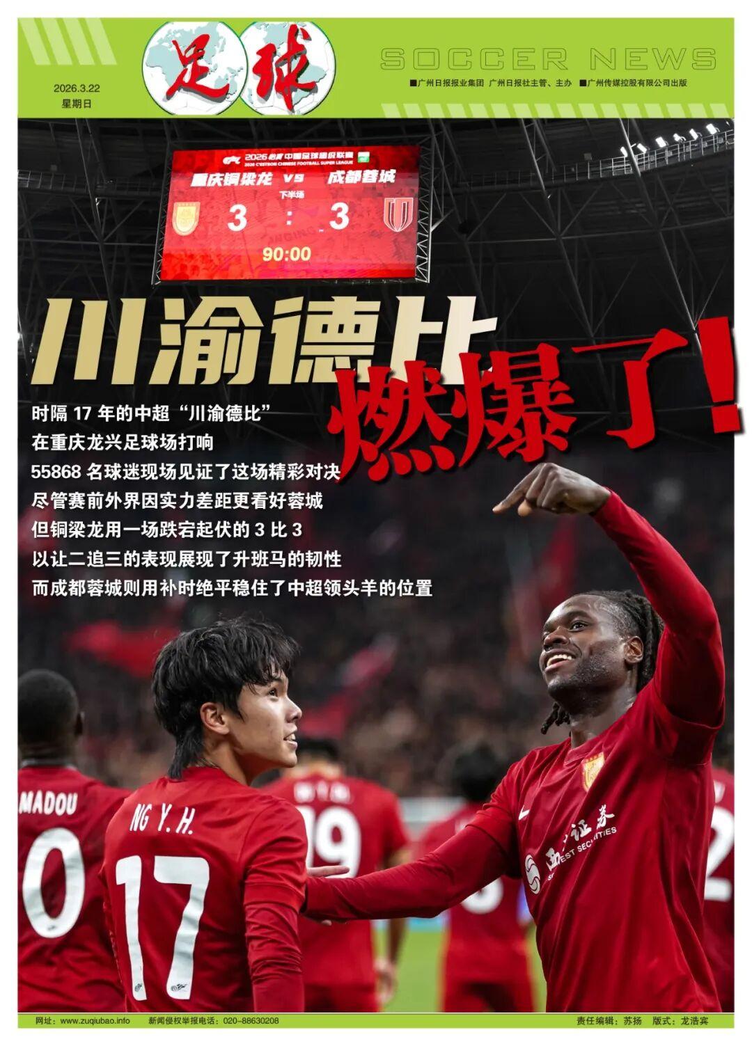 記者魯蜜報道 3月21日晚,時隔17年的中超“川渝德比”在重慶龍興足球場打響,升班馬重慶銅梁龍坐鎮主場迎戰成都蓉城,55868名球迷現場見證了這場精彩對決。儘管賽前外界因實力差距更看好蓉城,但銅梁龍用一場跌宕起伏的3比3,以讓二追三的表現展現了升班馬的韌性,而蓉城外援席爾瓦的離場,成爲本場比賽的關鍵轉折點。