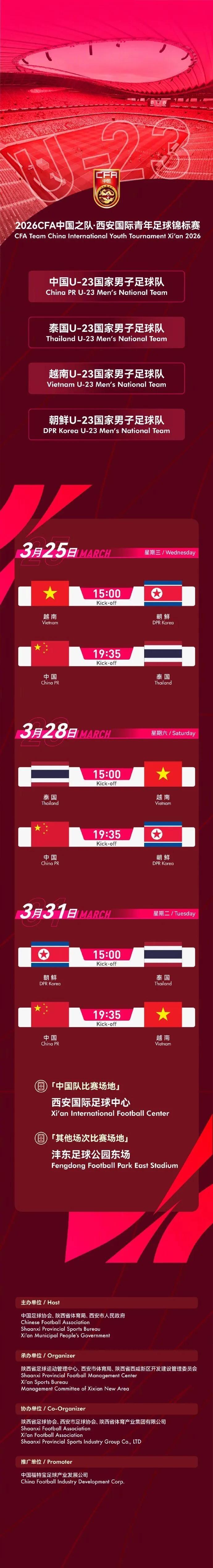等待陝西聯合在西安國際足球中心亮相的這段時間,陝西球迷同樣有3場高標準的比賽可以觀看:3月25日、28日和31日,在U23亞洲盃上獲得亞軍的U23國家隊將在這塊場地分別對陣泰國、朝鮮和越南的U23國家隊。實際上,U23國家隊通向U23亞洲盃亞軍之路便是從西安出發,即去年9月份的U23亞洲盃預選賽,那也是西安國際足球中心的首次亮相。