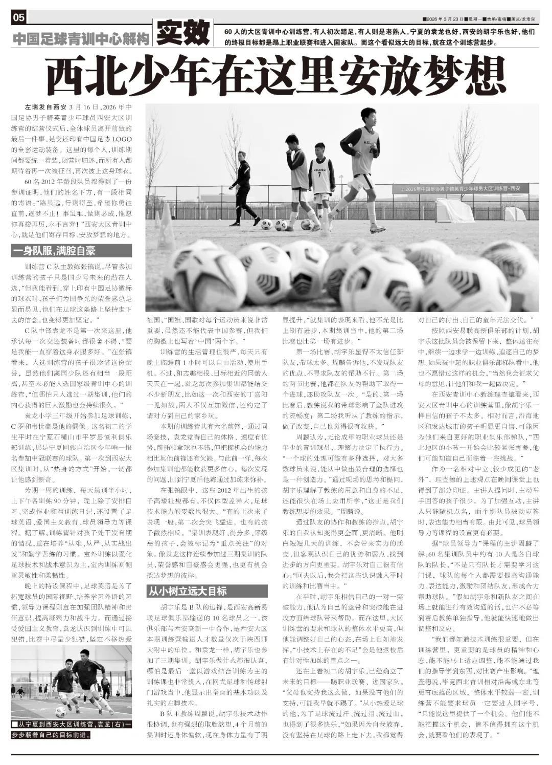 左瑞發自西安 3月16日,2026年中國足協男子精英青少年球員西安大區訓練營的結營儀式後,全體球員離開前做的最後一件事,是交還印有中國足協LOGO的全套運動裝備。這裏的每個人,訓練期間都要統一着裝,閉營時歸還,而所有人都期待着再一次被徵召,再次披上這身球衣。