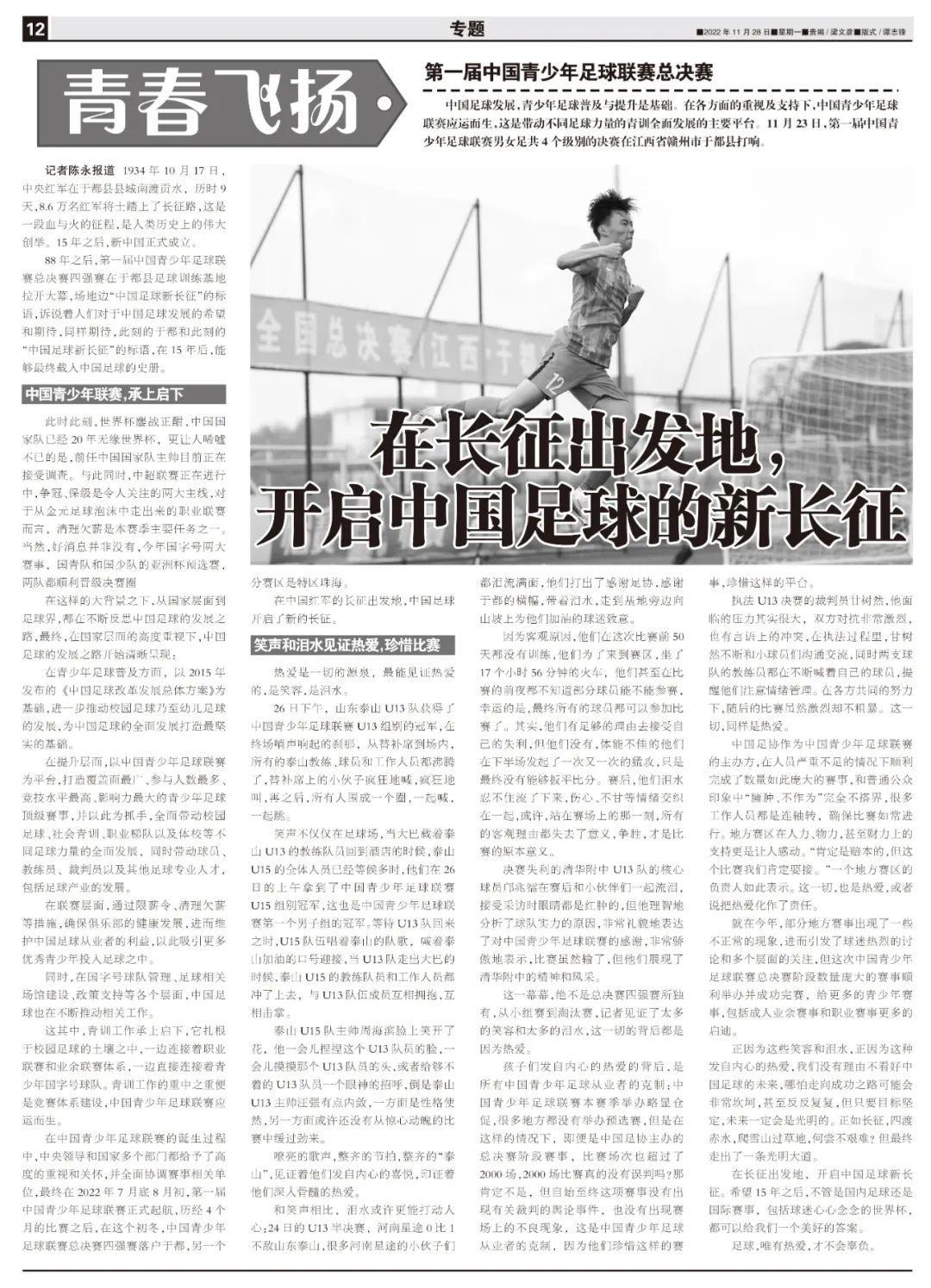 在中國青少年足球聯賽的誕生過程中,中央領導和國家多個部門都給予了高度的重視和關懷,並全面協調賽事相關單位,最終在2022年7月底8月初,第一屆中國青少年足球聯賽正式起航,歷經4個月的比賽之後,在這個初冬,中國青少年足球聯賽總決賽四強賽落戶于都,另一個分賽區是特區珠海。