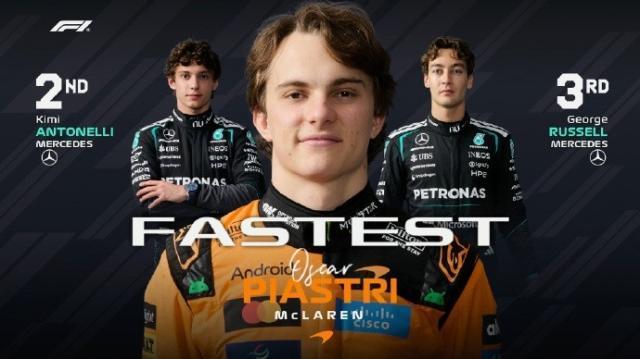 F1日本大獎賽結束二練爭奪,邁凱倫車手皮亞斯特里搶下頭名,梅賽德斯兩位車手分列二三位。日本站二練結束,皮亞斯特里以1:30.133的最快圈速排在第一,安東內利落後0.092秒排在第二,拉塞爾落後0.205秒排在第三,諾里斯第四,勒克萊爾第五。第六到第十分別爲漢密爾頓、霍肯伯格、阿爾本、貝爾曼、維斯塔潘。紅牛車隊的另一名車手哈賈爾排在第十五,紅牛二隊的林德布拉德因變速箱故障未能參加二練。科拉平託與維斯塔潘在十五號彎前的阻擋問題將在賽後進行調查。