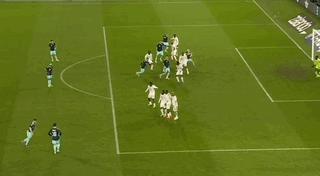 第31分鐘,基米希任意球吊入禁區,若納唐·塔混戰中一腳將球打高。