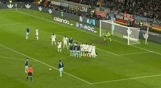第6分鐘,維爾茨主罰任意球中柱彈出。