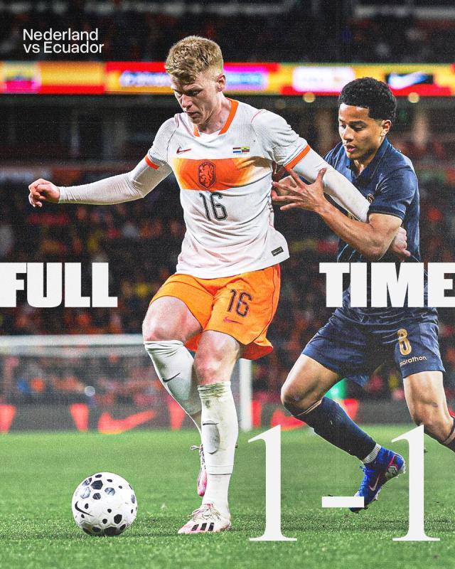 國際足球友誼賽,荷蘭隊坐鎮菲利普球場迎戰厄瓜多爾隊。荷蘭開場3分鐘就取得領先,但很快鄧弗里斯被紅牌罰下,並被對手點球扳平。