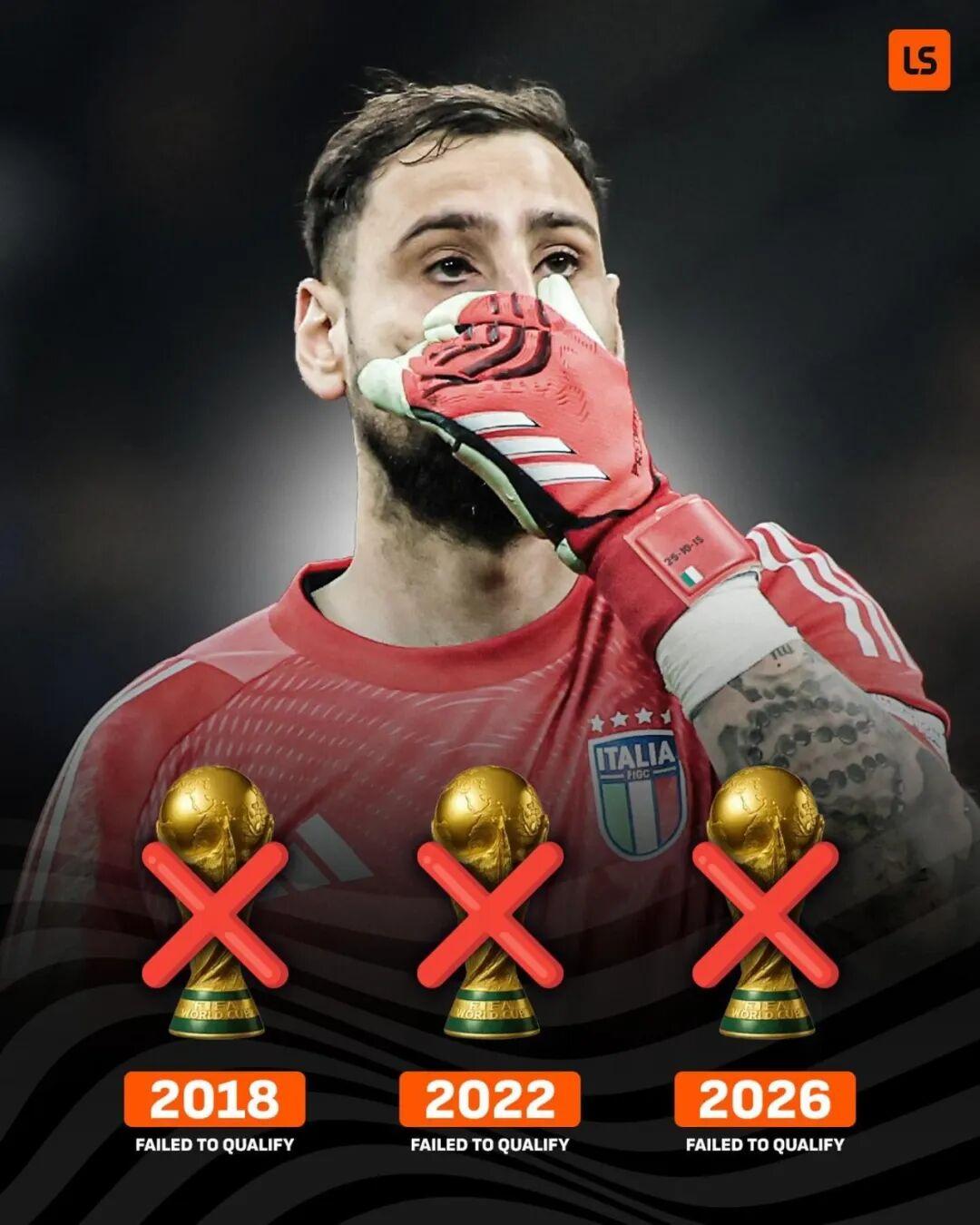 2018年世界盃以來,歐洲有22支球隊參加世界盃,包括了人口僅有意大利1/150的冰島。英格蘭、法國、德國、西班牙、葡萄牙、比利時、克羅地亞和瑞士都是連續3次參賽,荷蘭、瑞典、波蘭和塞爾維亞2次參賽。意大利不是附加賽前意媒所言跌落到歐洲第17名,而是更低的第23名。僅從近3屆參加世界盃的次數而言,意大利甚至淪爲歐洲四流。而即便僅談論陣容實力,意大利甚至也已無法進入歐洲第二梯隊,更遑論能競爭世界盃冠軍的奪冠梯隊……