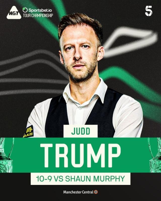 2026世界斯諾克巡迴錦標賽1/4決賽,全場比賽賈德·特魯姆普打出兩杆破百(140、137)和五杆50+(58、62、86、90、59),肖恩·墨菲打出兩杆破百(132、127)和七杆50+(72、59、51、71、69、52、96)。第一階段過後雙方戰成4比4平,第二階段上半場特魯姆普先勝一局,墨菲連勝三局7比5領先進入中場休息,下半場雙方交替領先,戰至9比9平,決勝局墨菲率先上手,特魯姆普抓住機會逆轉獲勝。最終特魯姆普10比9戰勝墨菲晉級四強,半決賽中,他將對陣尼爾・羅伯遜與巴里・霍金斯之間的勝者!