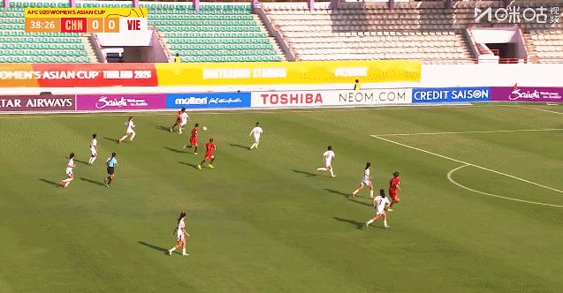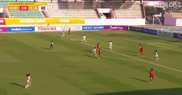 謝宗梅率先爲女青打開勝利之門——第39分鐘,她的左路傳中製造了機會,越南隊後衛失誤,將球傳到了鄭璐腳下,後者將球射入了球門左上角。