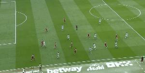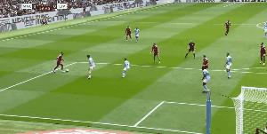 第50分鐘,謝爾基送出直塞,塞梅尼奧挑射破門,曼城3比0領先。