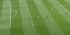 第63分鐘,努內斯禁區內放倒埃基蒂克,主裁判罰點球。薩拉赫主罰的點球被特拉福德撲出。