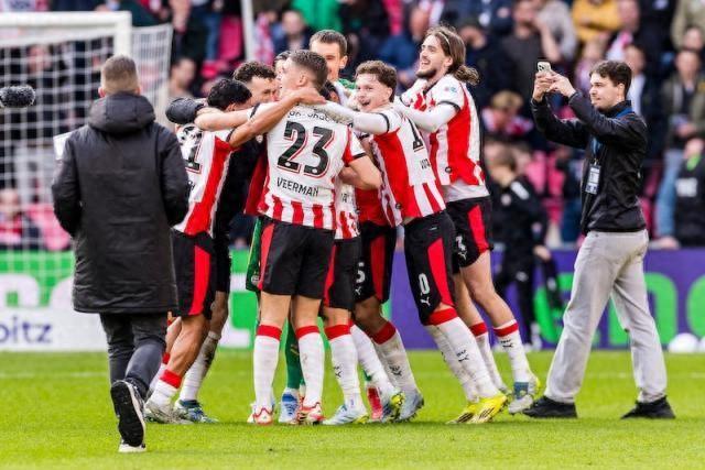 埃因霍溫此前已奪得2023-24賽季和2024-25賽季荷甲冠軍,本賽季奪冠後,埃因霍溫實現荷甲三連冠。這是埃因霍溫隊史第27次奪得荷甲冠軍。