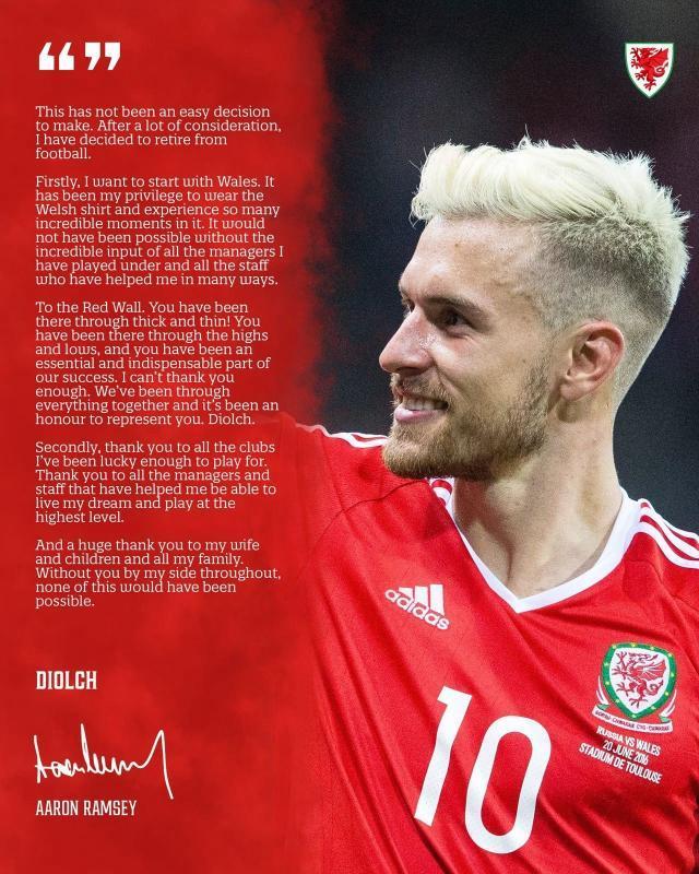04月07日訊 35歲威爾士中場拉姆塞在社媒自宣退役,結束19年職業生涯。
