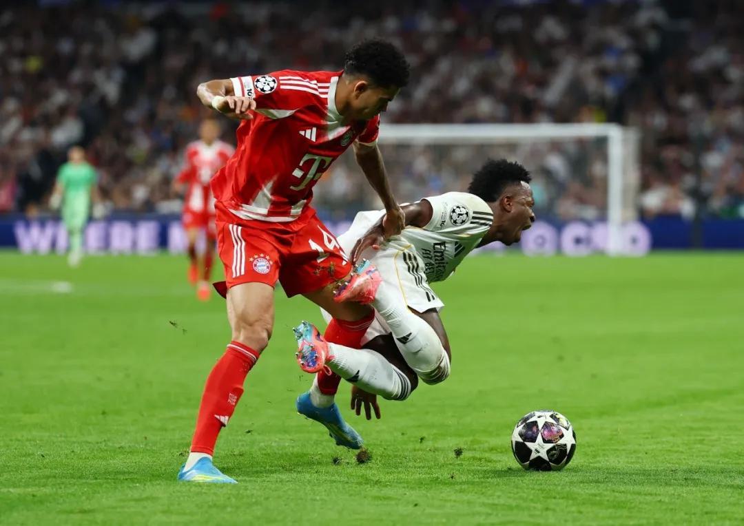 鋒線犀利的拜仁直到第41分鐘纔打破僵局,令人意外。維尼修斯自家後場回傳失誤打在奧利塞後背折射給凱恩,後者橫傳後插上無人盯防的格納布里直塞迪亞斯打破僵局。下半場開場僅20秒,又是卡雷拉斯被帕夫洛維奇中場斷球,帕夫洛維奇傳給奧利塞,後者突入禁區右側橫傳左路的凱恩,英格蘭中鋒一蹴而就。下半場阿韋羅亞換上米利唐、貝林厄姆後進攻纔有改善,第74分鐘貝林厄姆策動進攻,阿諾德助攻姆巴佩爲皇馬保住客場翻盤的希望。