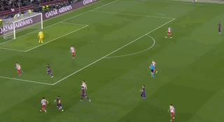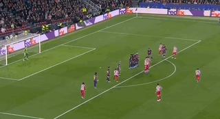 第45分鐘,正是利用這次任意球機會,阿爾瓦雷斯主罰打入右上死角,馬競1比0領先並多打一人。